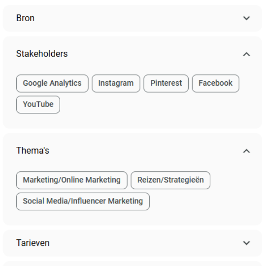 Vanaf nu is het mogelijk om analyses te maken met stakeholders en thema’s. Met de stakeholders krijg je snel inzicht in betrokken personen, organisaties en plekken bij het geselecteerde bericht. Wil je weten in welk thema het geselecteerde bericht valt? Daar is nu ook inzicht in te krijgen. Zo heb je snel een idee van wat voor een bericht er is geschreven over jouw zoekopdracht.